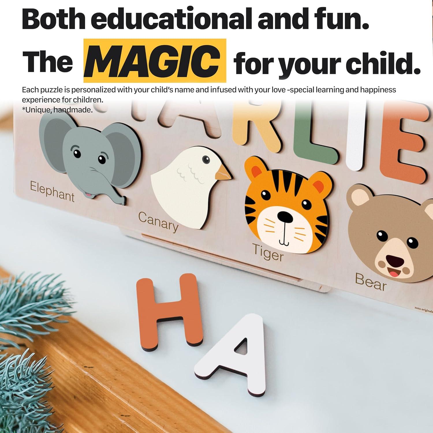 A Toy with Educational Benefits: Our custom name puzzle enhances motor skills, coordination, and focus. Promotes problem-solving, self-confidence, and happiness Introduces shapes, names, and spelling Encourages exploration and curiosity.