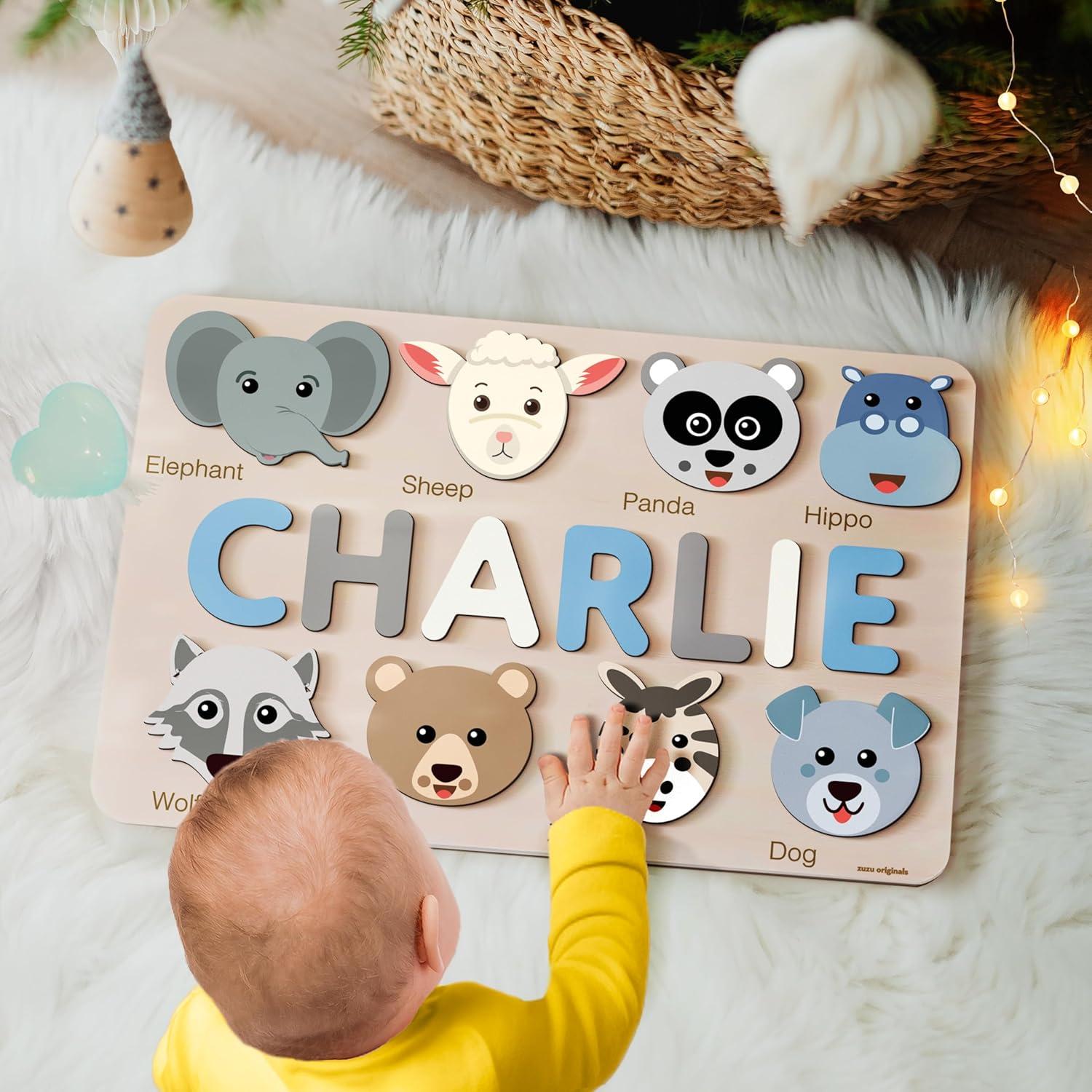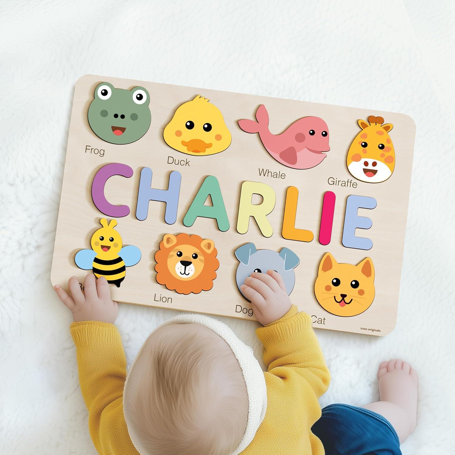 Personalize Name Puzzle for Toddlers with Animals, Boys and Girls 0 1 2 3 Year Old, Personalized Puzzle for Kids, 1 Year Old Girl and Boy Kid Gifts, Customized Baby Gift, Educational Name Toy