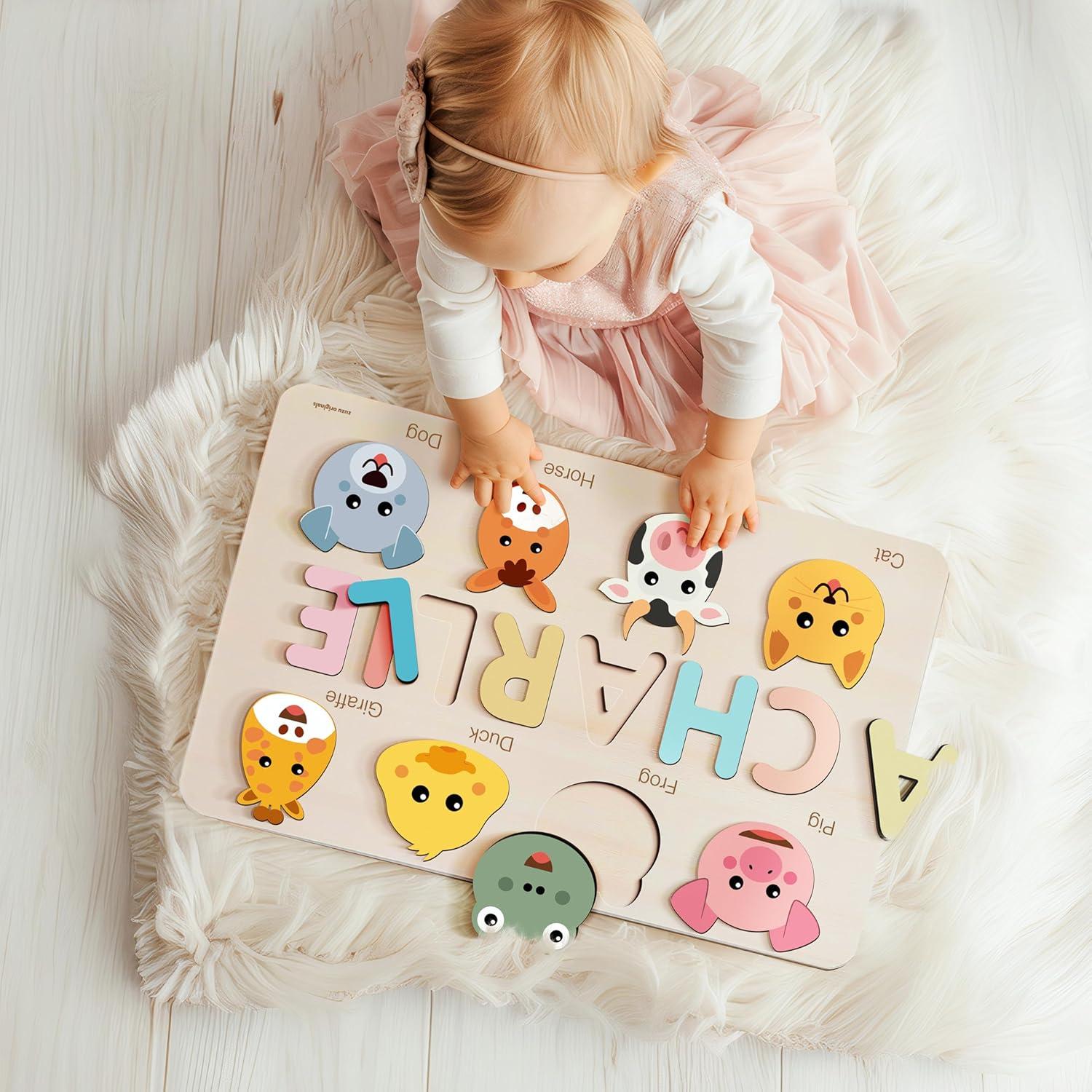 Name Puzzle for Kids, First Birthday Gifts for Girls Boys, ABC Wooden Animals Jigsaw Puzzle, Baby Toddler Toys, Preschool Educational for Girls Boys(Amazon Exclusive)-TSCA,CPC Certified