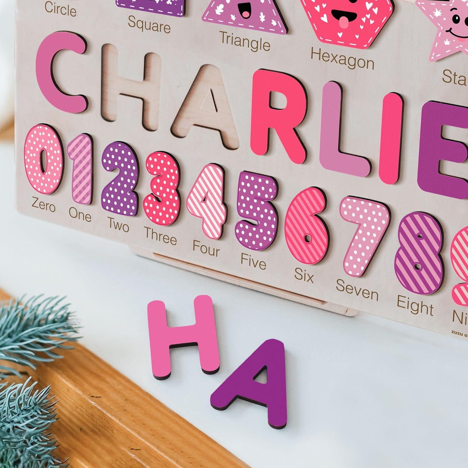 Custom Name Puzzle for Kids – Zuzu Puzzle Toddler Learning Toy, Wooden Baby Gift, Ideal for Baby Showers, Christmas & 1st Birthday (0-36 Months)-Handmade