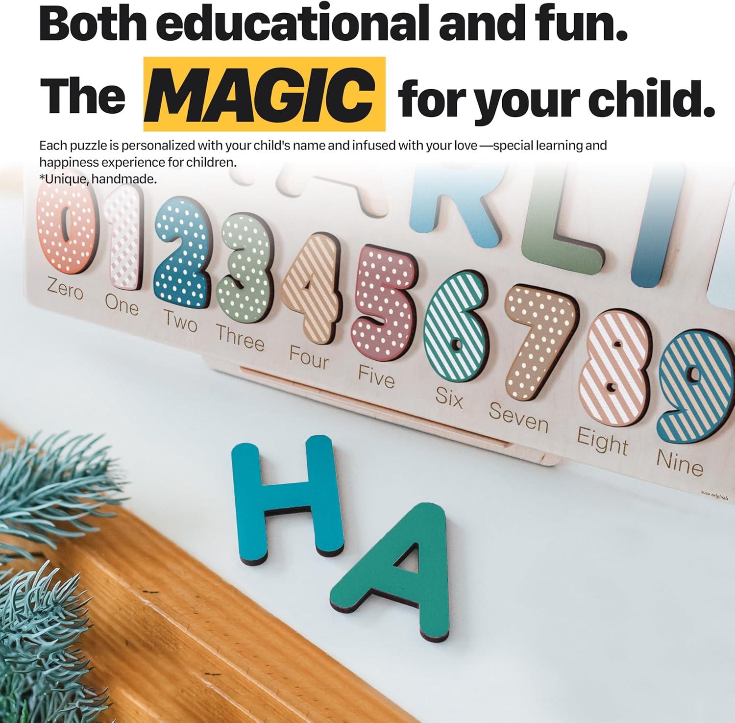 A Toy with Educational Benefits: Our custom name puzzle enhances motor skills, coordination, and focus. Promotes problem-solving, self-confidence, and happiness Introduces shapes, names, and spelling Encourages exploration and curiosity.