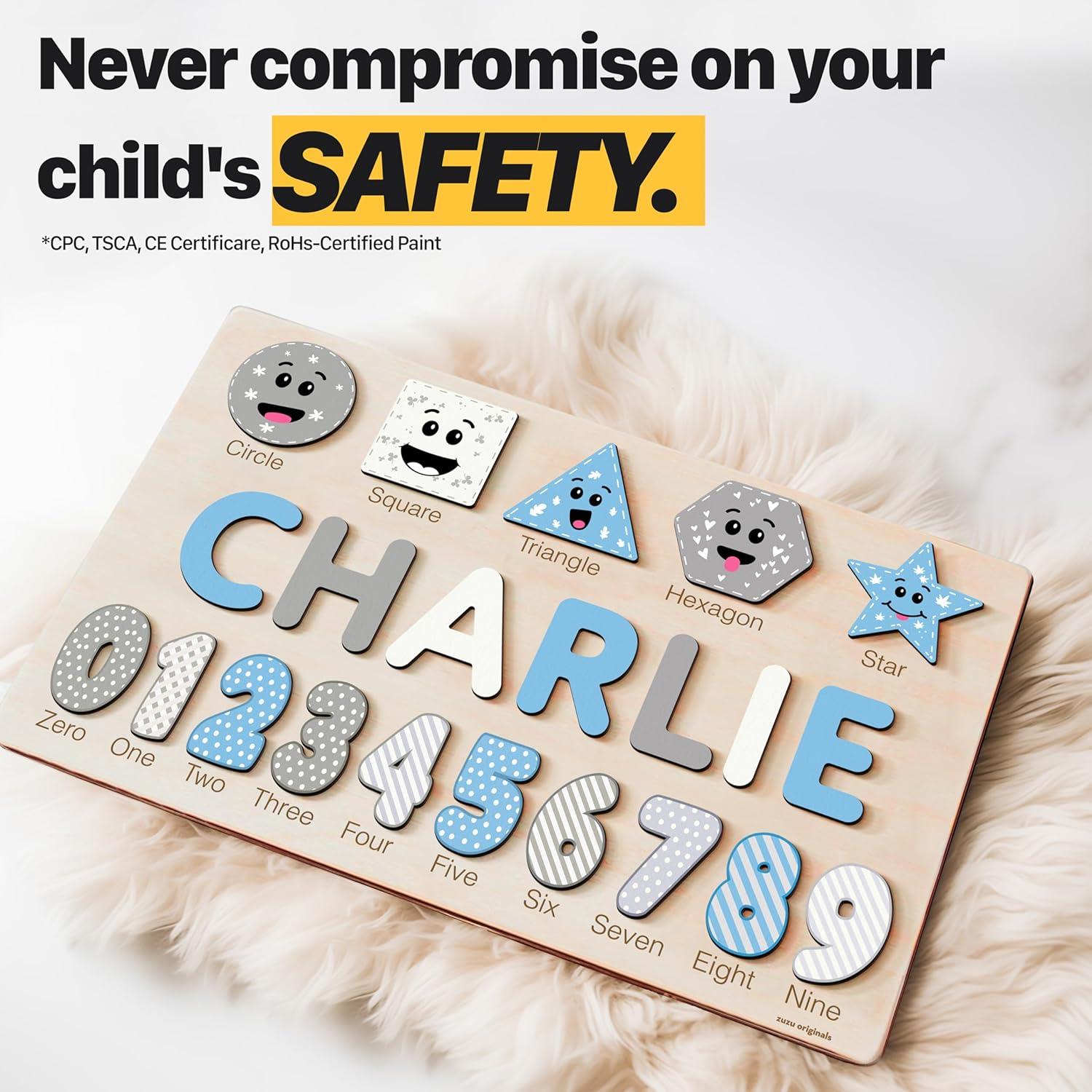 Safety First for Kids: Made with RoHS-certified, non-toxic dyes. Our personalized puzzles have rounded corners and smooth surfaces to ensure they are safe for your little ones. Our Puzzles have TSCA, MSDS, CE and CPC certificate. All values ​​have passed the tests without any conditions. As a source of pride, most of the Chemicals are 80% below the minimum reference value. A thoughtful choice for a baby gift and toy that prioritizes health and safety.