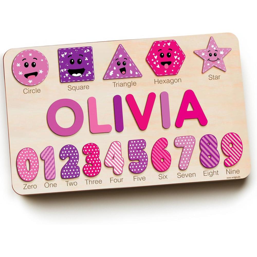 Montessori Toys for 0 1 2 Year Old, Girls 1st Birthday, Montessori Toy, Puzzle Name, Wooden Toys for 1 Year Old, 12 Month Toys, Toddler Puzzle(Puzzle with Numbers and Shapes)